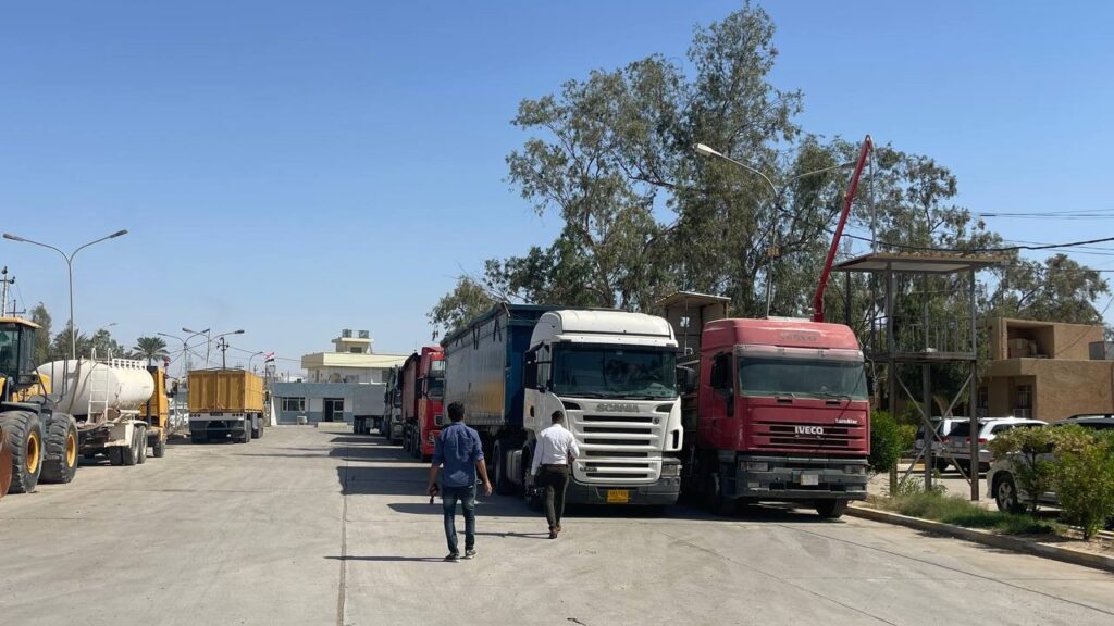 اصطفت الشاحنات المحملة بمحصول الحنطة في طوابير، منذ الصباح الباكر، فيما توجه المزارعون إلى مكاتب الإدارة لإنجاز معاملات التسويق.