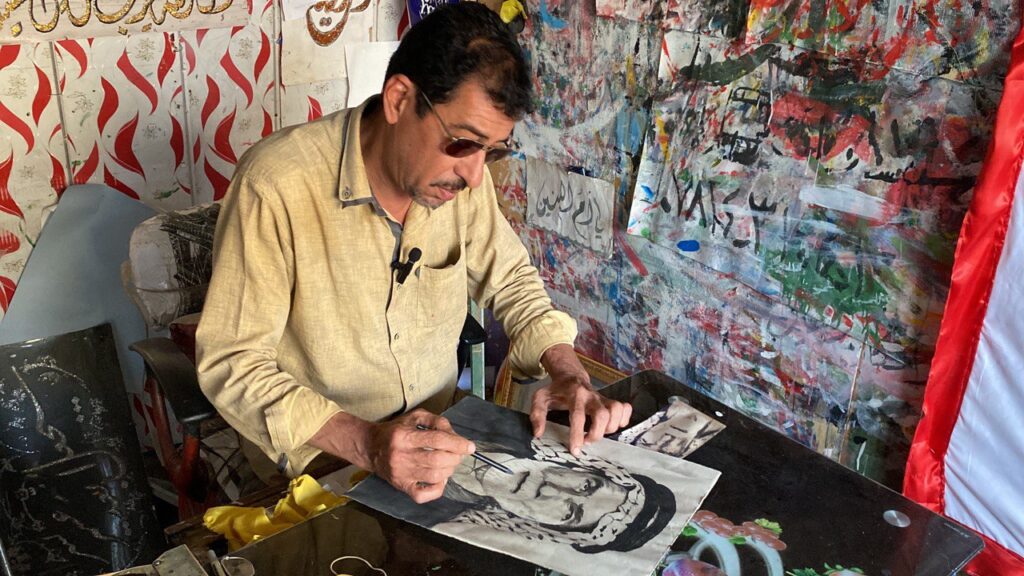 رغم تراجع الطلب عليها، إلا أن الفنان “حسين صبري” ما يزال يمارس مهنة رسم الصور الشخصية منذ 20 عاماً في محله الصغير بمدينة الناصرية، لكنه يعتمد أكثر على ترميم الصور القديمة.
