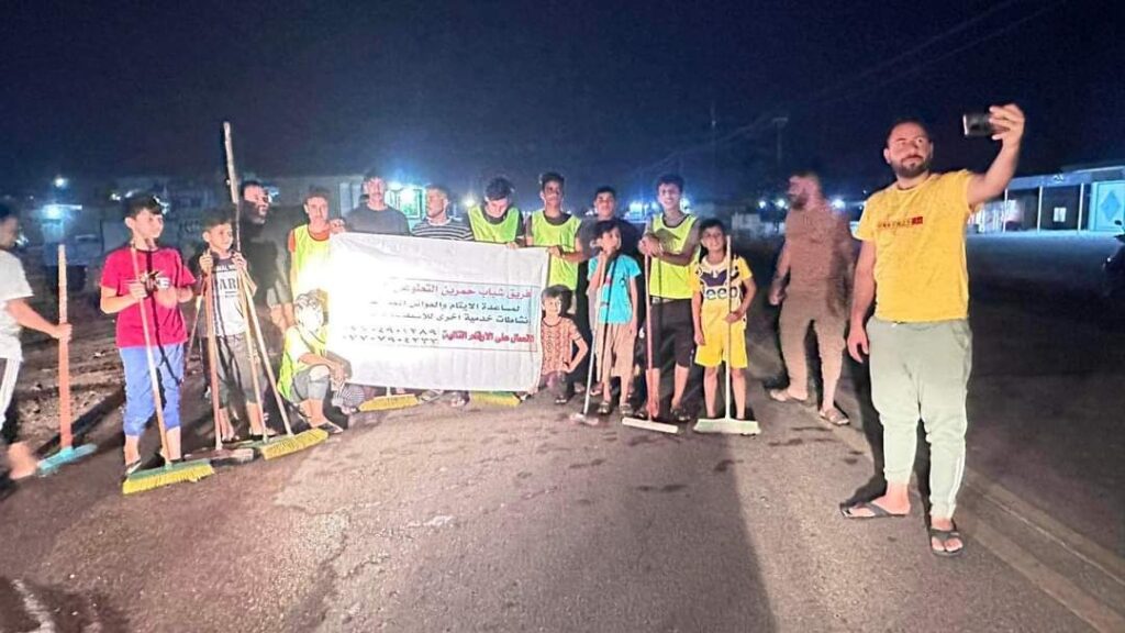 وبعد تنظيف الشوارع الرئيسية توجهوا إلى الحدائق العامة في حمرين لتنظيفها من “الادغال” والحشائش.