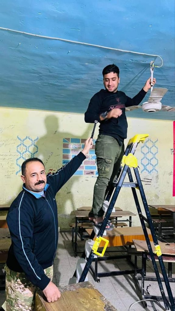 و قال علي الشمري احد المتطوعين لشبكة 964، ان “أعمال التأهيل شملت تغيير مصابيح الصفوف والممرات وحنفيات المياه ومفاتيح الكهرباء للمدرستين، وهي مستمرة لتأهيل بقية مدارس المنطقة وسد احتياجاتها بجهود المتطوعين الشباب ودعم المتبرعين”.
