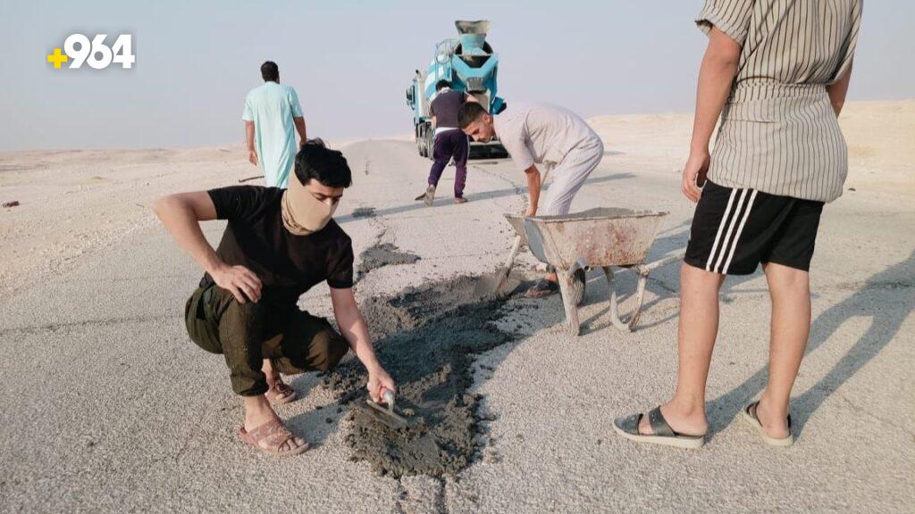 نظم مجموعة من شباب قضاء السلمان غرب المثنى، السبت، مبادرة لتصليح وترقيع التكسرات والتخسفات على طول الطريق الرابط بين مدينة السماوة والقضاء.