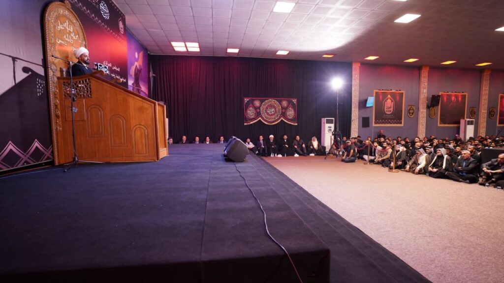 شارك رئيس مجلس الوزراء محمد شياع السوداني، الأحد، في مجلس عزاء “أخوة زينب” الذي يلقي فيه الأمين العام لحركة عصائب أهل الحق قيس الخزعلي محاضراته الدينية في العشرة الآوآخر من شهر محرم.