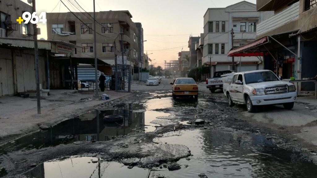 الشارع تحفّر والروائح تملأ المكان رغم أنه مكان تجاري فيه الكثير من العيادات الطبية والأسواق التجارية، ويقع هذا الشارع مقابل جامع السامرائي وهذه المنطقة معروفة بحركتها التجارية.