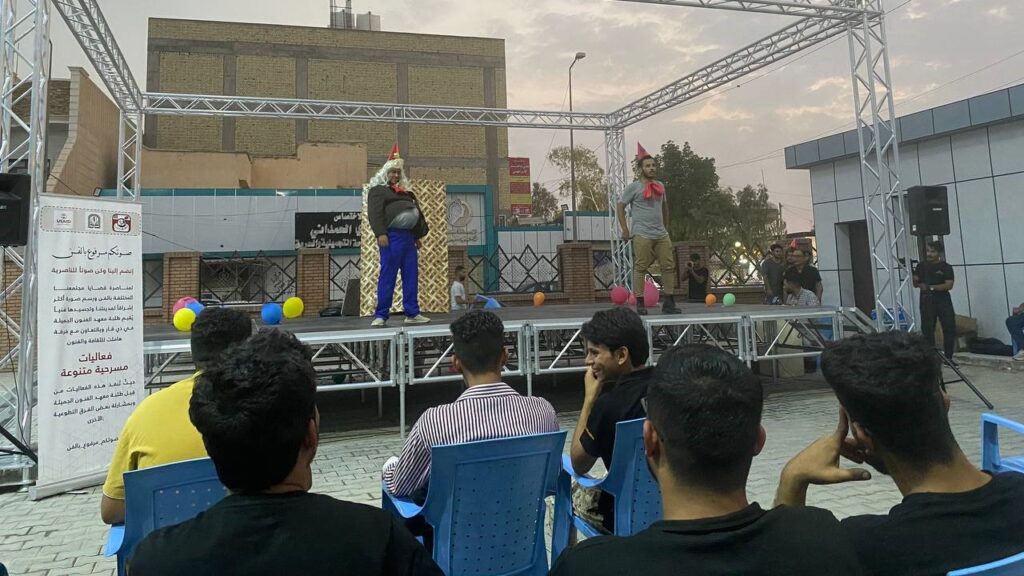 قدمت فرقة هاملت في الناصرية، الأربعاء، عرضاً في الهواء الطلق، وسط باحة القصر الثقافي، وأدت مسرحية “كرسمس” على أرضية المسرح المتنقل بحضور العوائل وشباب المدينة.
