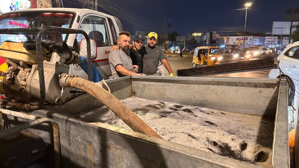 علي ومحمد قاما يتحوير حوض السيارة بطريقة تبقي الأسماك حية وطازجة، ملحقة بمضخة لتدوير المياه داخل الحوض.