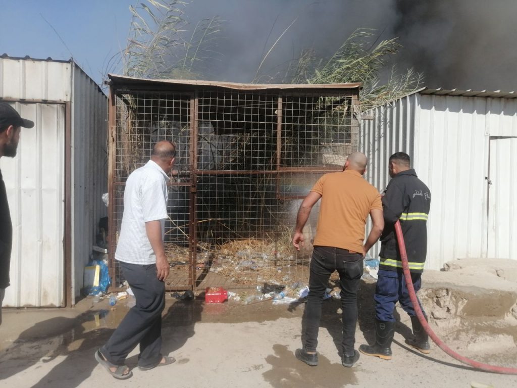 وقال مراسل “شبكة 964” في المدينة، إن أطفالاً كانوا يعبثون بإحراق كميات من القصب يمتد وسط أحد المبازل قرب معمل لإصدار اللوحات المرورية، قبل أن تمتد ألسنة النيران إلى المحال القريبة.