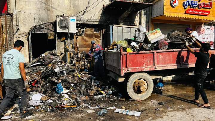 حريق يلتهم “مطيبات الشيف مرتضى” وسط بعقوبة والخسائر بالملايين (صور)