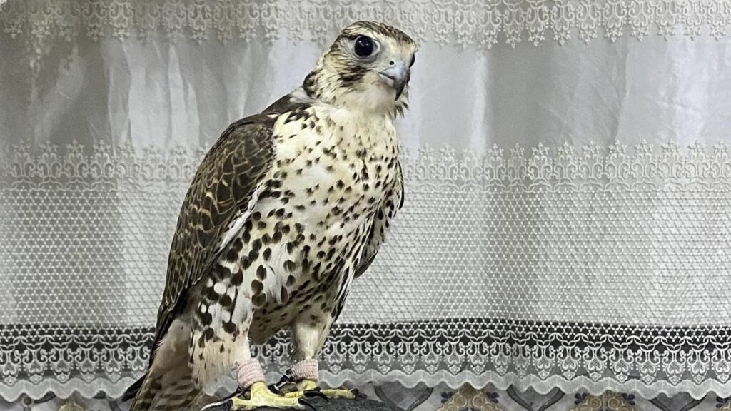 الطير الذي فقدته من الصقور الحرة وهو من النوع “المثلوث” وهو لدي منذ 3 أشهر وسعره يصل إلى مليون دينار كونه صغير الحجم.