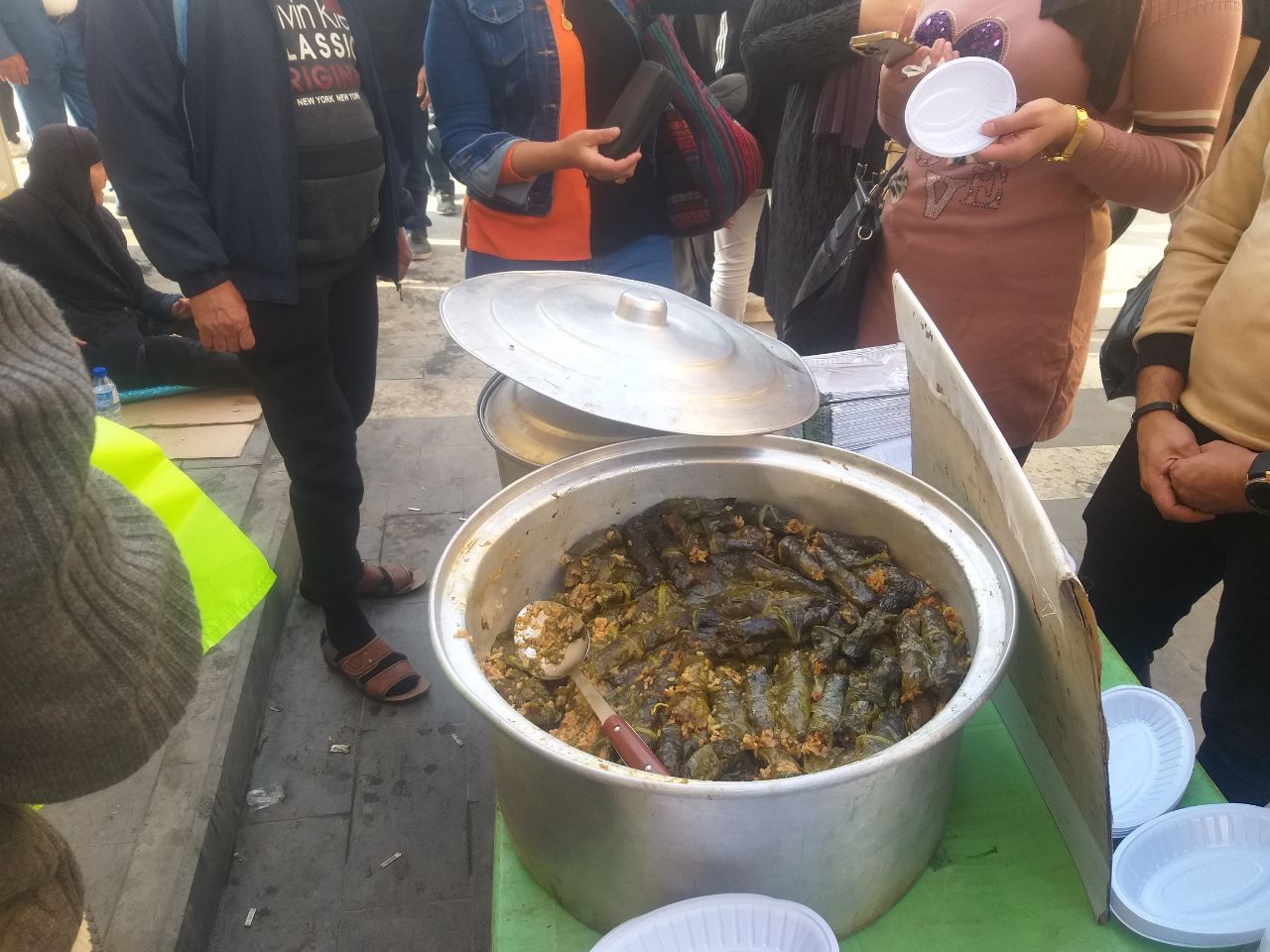 إلى جوار هذه التظاهرة، كان هناك تجمّع آخر، حيث أحاط شباب وشابات بعربة تعرض أطباق “دولمة وبرياني”، خشيَ صاحبها من الكاميرا: “هذا رزقي، أمانة الله لا ترسلها لهم”، حيث بدا أن ثمّة جهةٍ ما تمنعه من مزاولة عمله في هذا المكان.