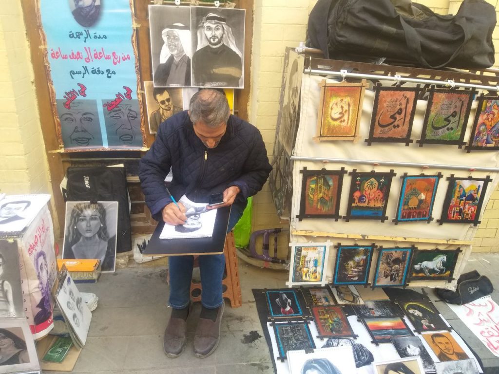 في نهاية شارع المتنبي، رسامون يفترشون الأرض.. يُنجزون اللوحات الشخصية خلال نصف ساعة بثمن 5000 دينار، وهي مهنة انحسرت في بقية الأماكن.