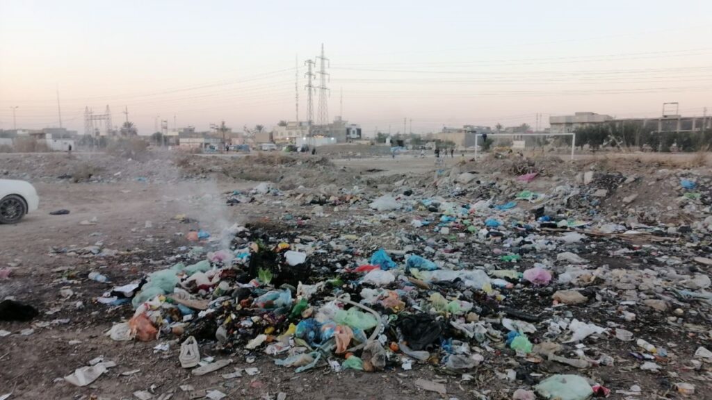 لا توجد حاويات للنفايات فيضطر الأهالي إلى جمع القمامة في أماكن محددة، سواءً على قارعة الطريق أو في بعض الساحات المحيطة بالأحياء السكنية، لتتكدس وتكون مصدرا للروائح الكريهة.