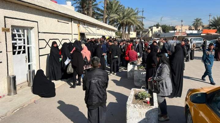 سكان مناطق الضباط الثانية، المعسكر، وحي الصابرين ضمن منطقة البلديات شرق بغداد اصطفوا منذ الصباح الباكر، الاثنين، عند بوابة بلدية الغدير للحصول على استمارة تمليك العشوائيات وتقديم المستمسكات المطلوبة.