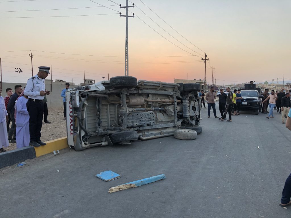 اصطدمت شاحنة بسيارة “بيك آب” مأدى إلى انقلابها، على طريق “الأربع سايدات” قرب سايلو في قضاء سنجار.