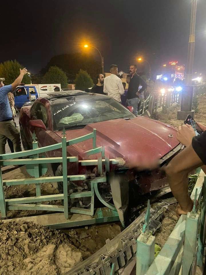 بعقوبة: سباق سيارتي ” كومارو” ينتهي بحادث مروري وتحطم احداهما (صور)
