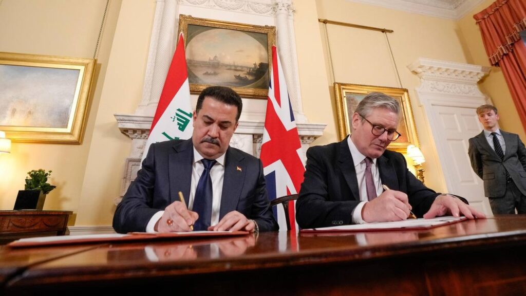 وقع رئيس الوزراء محمد شياع السوداني، الثلاثاء، مع نظيره البريطاني كير ستارمر، اتفاقية شراكة وتعاون تاريخية، واسعة النطاق بشأن التجارة والتعاون الاقتصادي والاستراتيجي، والاتفاق على حزمة تجارية بقيمة (12.3) مليار جنيه إسترليني، مدعومة بسلسلة من اتفاقيات ضمان الصادرات، لتعزيز العلاقة التجارية المتنامية بين البلدين.