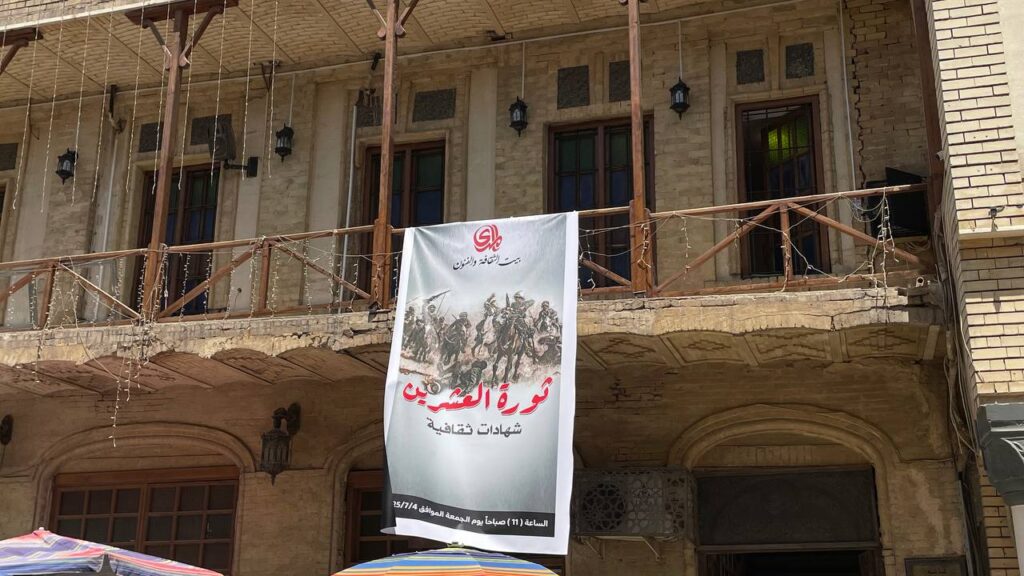 أقام بيت المدى للثقافة والفنون في شارع المتنبي وسط بغداد، جلسة نقاشية تحت عنوان “شهادات ومواقف من ذاكرة الثورة” بمناسبة مرور 105 أعوام على اندلاع ثورة العشرين، وذلك بمشاركة عدد من الباحثين والأكاديميين المختصين بالتاريخ والهوية الوطنية، حيث تناولت أبرز المحطات السياسية والاجتماعية التي مهدت للثورة، إلى جانب دور المرجعية الدينية والشباب والمثقفين في تحريك الشارع العراقي آنذاك، وتأثر الوقائع بإعلان بنود سايكس بيكو التي كانت سرية أول الأمر، فضلاً عن ثورة سعد زغلول في مصر عام 1919.. وأكد الباحثون على أهمية تثبيت يوم الـ 30 من حزيران وهو يوم الثورة، عيداً وطنياً رسمياً بوصفه نقطة الانطلاق الفعلية لتأسيس الدولة العراقية الحديثة.