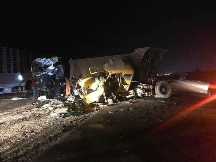 وجهاً لوجه..اصطدام شاحنتين يقتل سائقاً ويقود الآخر إلى مستشفى هيت