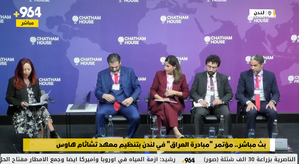 تبث شبكة 964 وقائع الجلسة الثالثة من مؤتمر معهد تشاثام هاوس “مبادرة العراق” وتضم مستشار السوداني عامر العضاض، ومؤسسة “She Codes Too” رغد العبودي، وحيدر الشاكري ولينا خطيب من برنامج الشرق الاوسط وشمال أفريقيا في المعهد، وكبير اقتصاديي الأسواق الناشئة (بلومبرغ) زياد داوود.