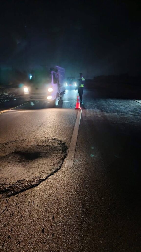 حرصًا على سلامة مستخدمي الطريق، تم وضع دورية مرابطة مع مستلزمات التحذير لتنبيه السائقين ومنع وقوع الحوادث، وسيتم متابعة الحالة لحين إكمال الصيانة من قبل الجهات المختصة.