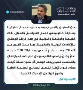 وكان شبل الزيدي زعيم تحالف خدمات، نشر قبل يومين تغريدة يحذر فيها الإطار التنسيقي من “اتصالات فيها دمار حقيقي وسابقة خطيرة واستسلام تام” لأطراف إقليمية ودولية.